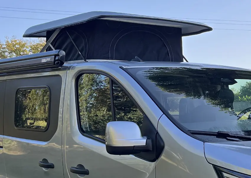 Le petit toit relevable vous permet de rester debout dans la zone de vie du Goëland et le panneau solaire vous assure une réserve supplémentaire d'énergie.